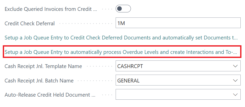 As a business, it may be useful to have Clever Interactions and To's generated automatically, based on Overdue levels. This not only reduces the manual effort of creating them but equally ensures that once a customer is overdue, the correct measures are taken and recorded in Business Central instantly.