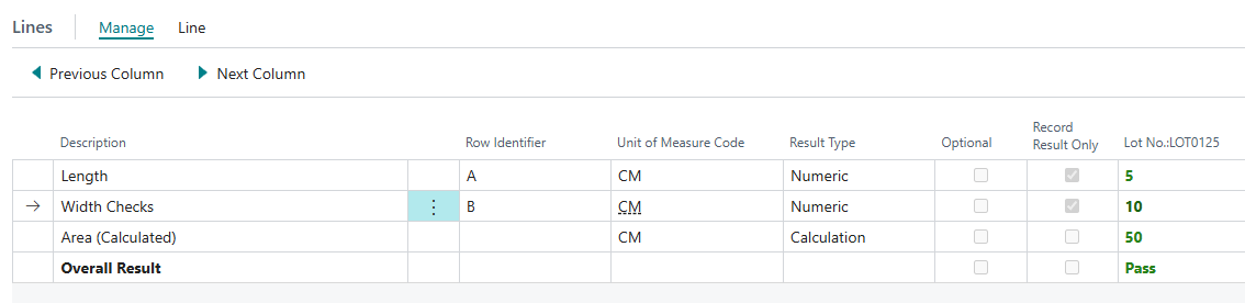 Here is an example of them on a Quality Order to show as long as the Calculation line calculates correctly, the Overall Result is 'Pass'.