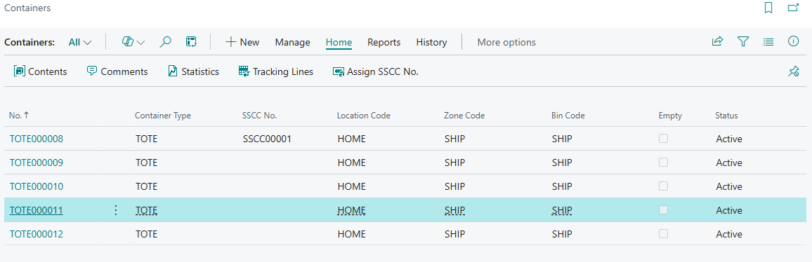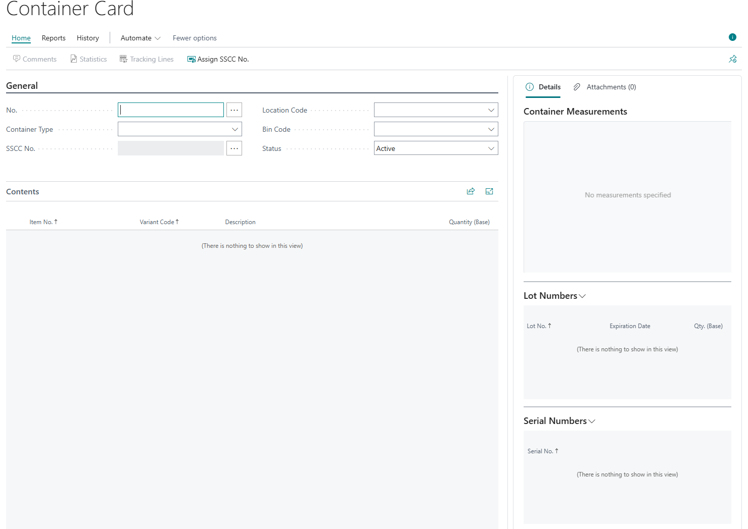| Location Code | Choose the warehouse location where the container will be stored. |