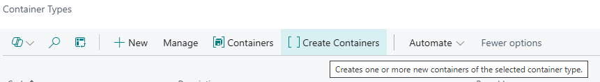 To create a new container, from the "Containers" Screen you click +New from the Menu Ribbon.