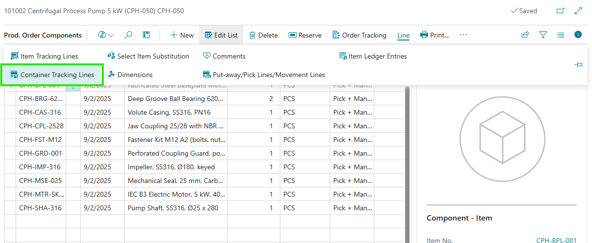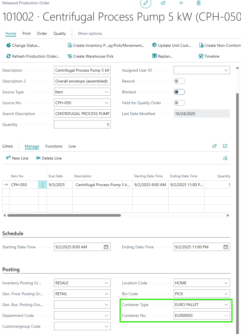 - Posted production movements retain container traceability in container tracking history.