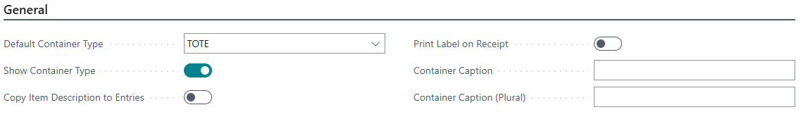 A toggle switch that, when enabled, displays the container type on warehouse documents and journals. This improves visibility and traceability. -