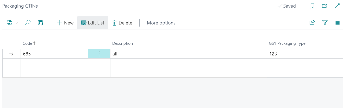 Maintain Code, Description, and GS1 Packaging Type to map GTINs to packaging standards.