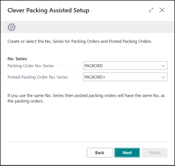 The next Page allows you to be able to define which number series should be used for numbering both the Packing Orders and Posted Packing Orders. The information entered here will then be recorded on the General FastTab of the Clever Packing Setup Page.
