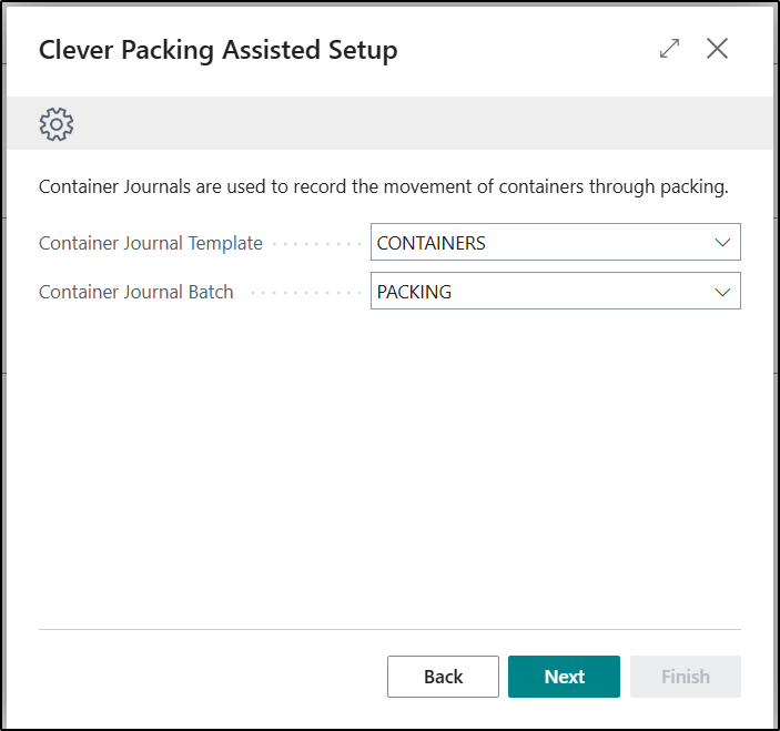 The next Page allows you to be able to define which Container Journal Template and Batch you would like to use to record the movements of Containers when using the Clever Packing App. The details entered here will be recorded on the Clever WMS Containers FastTab of the Clever Packing Setup Page.