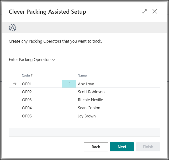 The next Page allows you to be able to create the required Packing Operators. This information will be recorded on the Packing Operators Page.