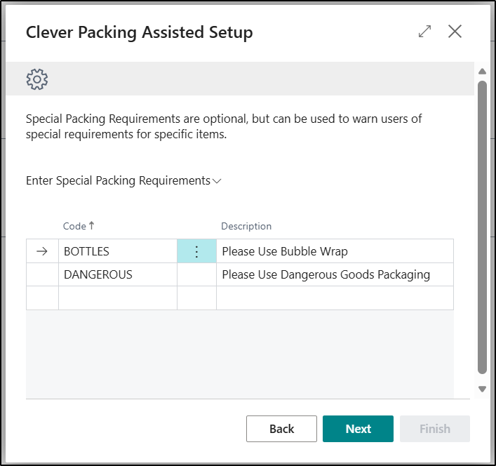 The Assisted Setup option can be selected in order to open up the Clever Packing Assisted Setup Wizard.