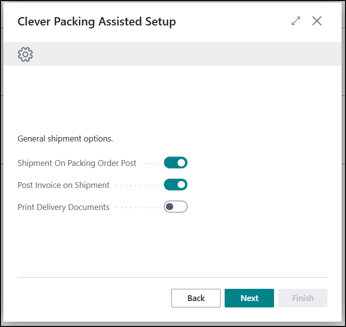 The next Page allows you to define various options relating to the Packing Order and the Posting of Shipments. The options selected here will be recorded on the Shipment FastTab of the Clever Packing Setup Page.