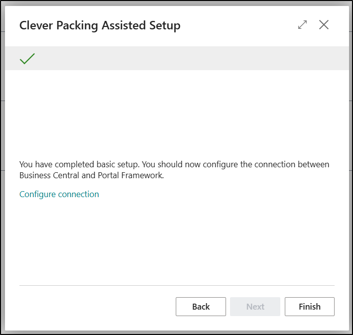 The last Page on the Wizard allows you to Configure the Connection between Business Central and the Clever Packing Portal.