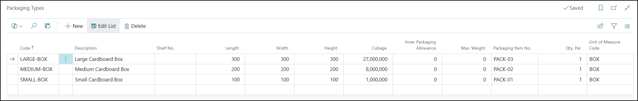 The Packing Types Page should be used to define all the different types of Packaging that you could use at your Packing Stations to send your Items out to your customers in. The detail defined here will then be used by the Packing Portal to calculate the most suitable Packaging Type to use for the Order and Items you are sending. This is calculated as follows:
