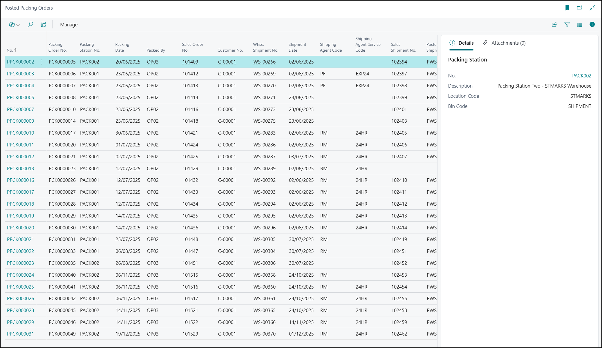 All processed Packing Orders can be viewed in Business Central by navigating to the Posted Packing Orders page.