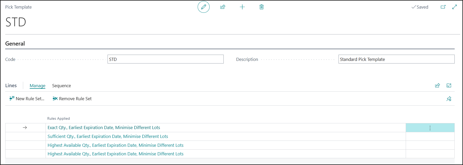 - A default Pick Template will be automatically created for you to use.