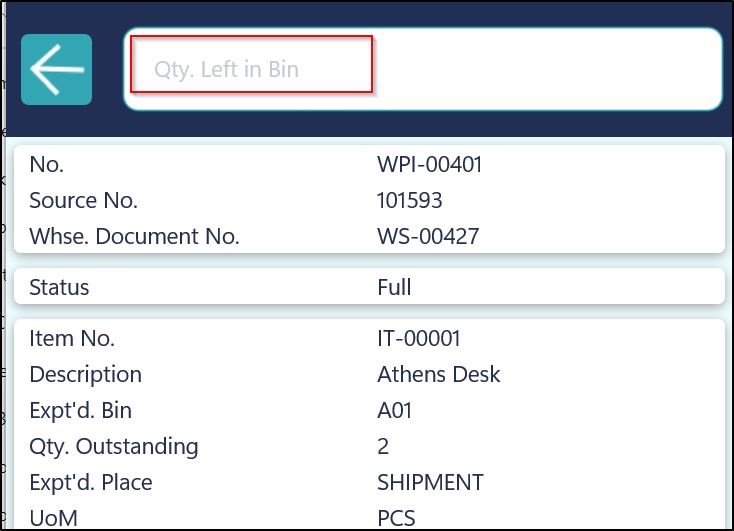 If a count is then required, then the user will be prompted on the Device to enter the Qty Left in Bin