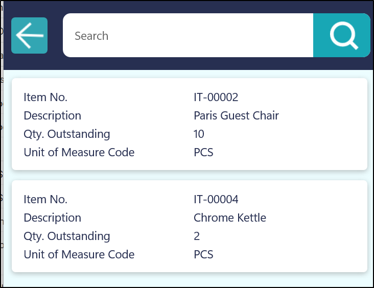 Alternatively, you can also select the Items button in order to display a full list of outstanding items from the selected document and select the Item from this list instead.