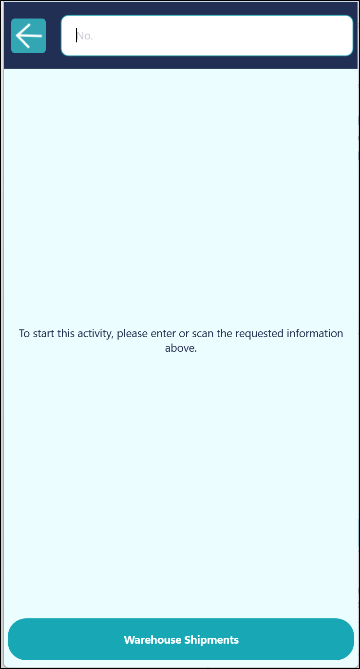 After the Shipment Tile has been selected, the Device will prompt the User to enter in the Warehouse Shipment No. that you want to process.