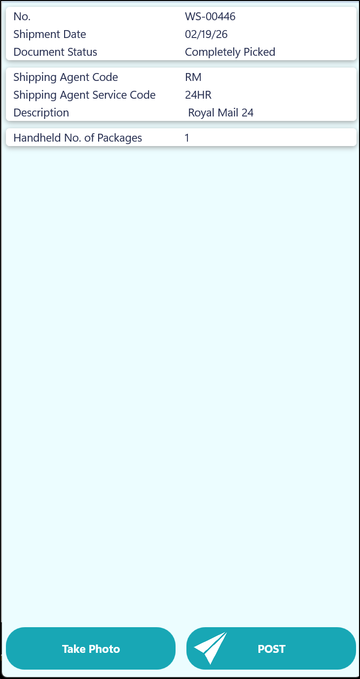 NOTE - If a photo has been taken, then it will be stored against the Posted Warehouse Shipment in Business Central.