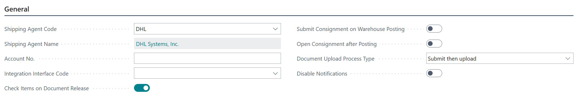 With the new record created you can then update the attributes on the "Shipping Agent Card" as detailed below.