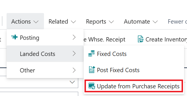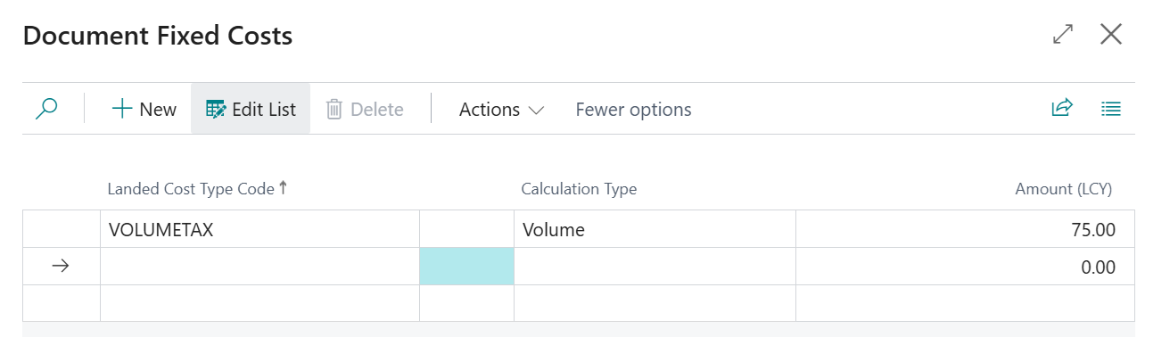 Fixed Costs can also be updated or removed manually from a Purchase Order as required. Furthermore, if Fixed Costs are likely to change after Release of the document (but before the document is completely handled at which point costs are posted) you can update them as required, if you have enabled the Fixed Cost Editable when Released attribute on the "Landed Cost Setup" screen.