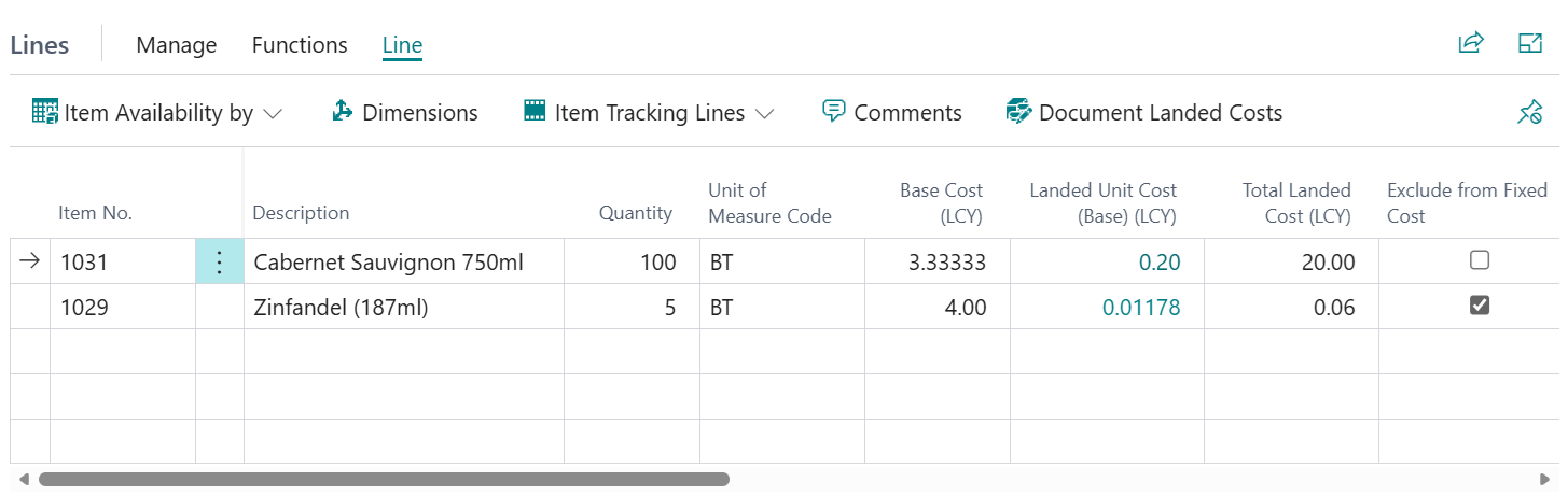 Also available on the Transfer Lines section, you can see the Base Cost (LCY), Landed Unit Cost (Base) (LCY) and the Total Landed Cost (LCY) for each Item line providing a quick overview of any associated Landed Costs. The Base Cost (LCY) is used to set the Unit Cost of the Item - something which as standard in Business Central isn't required for a Transfer Order. The Base Cost (LCY) is set from the related Purchase Order Line (if linked) or the Base Cost on the "Item Card".