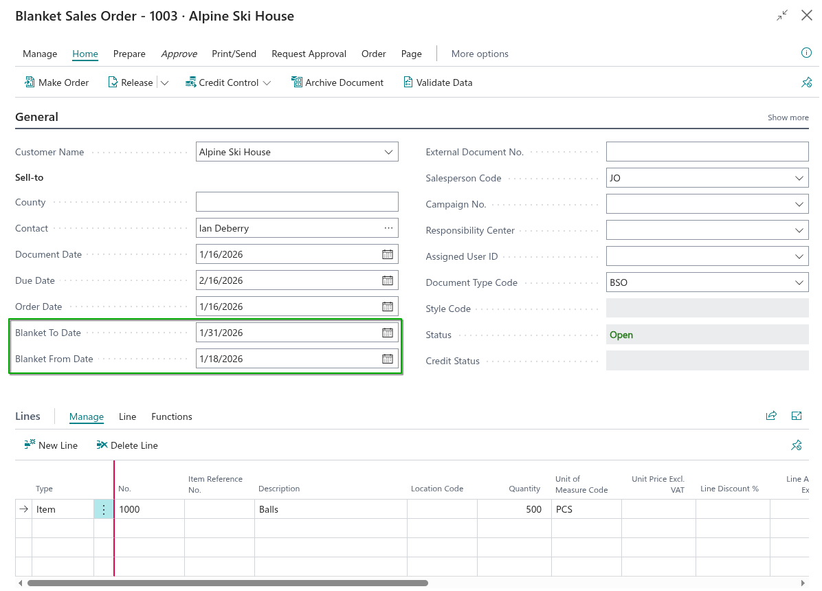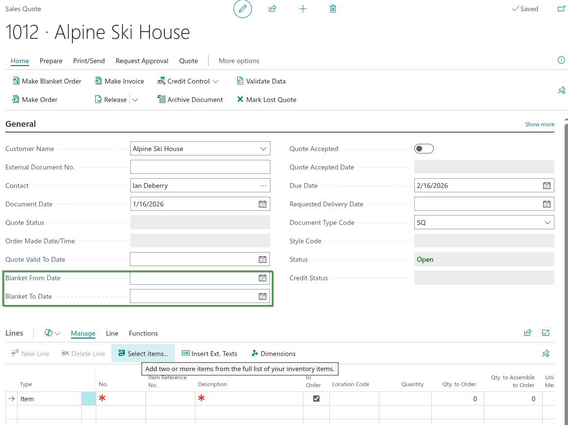 This allows users to create a Blanket Order directly from a Sales or Purchase Quote instead of converting it to a standard Order.